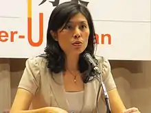 Cheng Li-wun (Chinese: 鄭麗文; born November 12, 1969) is a Kuomintang Politician, current non-divisional Legislator. The ancestral home is Yunnan, and once served as former spokeswoman for the Kuomintang in the Republic of China.,[1] Democratic Progressive Party Deputy Director of Youth Department, National Assembly Representative, Speaker of the Executive Yuan, the 7th term non-divisional Legislator, Kuomintang Central Committee Deputy Chief Executive of the Policy Committee, Kuomintang Central Committee Chairman of the Cultural Communication. She was previously a member of the Democratic Progressive Party, but she switched sides, citing disappointment with the DPP.[1]