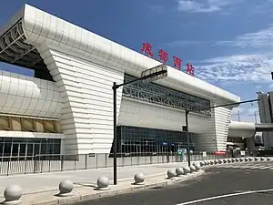 Chengdu West (Chinese: 成都西) is a railway station located in Qingyang District, Chengdu, Sichuan Province, China.[1] It also serves as a transfer station between Line 4 and Line 9 of the Chengdu Metro and Line T2 of the Chengdu Tram.