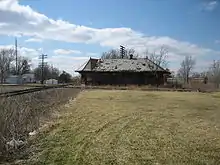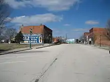 Slowly, additional improvements were made. Rectangular blocks of stone were placed at road intersections. Changes in livestock laws made it possible for residents to tear down the wooden fences that had once surrounded every residence. Many trees were planted. The Chicago and Alton was double tracked in 1890. In 1891 the first electric lights were installed. A union station was built so both railroads could share passenger facilities; unfortunately it burned down during Armistice celebrations on November 11, 1918.[22] This was not the towns only serious July 1894 the entire business district town east of the Railroad burned down; very few of the buildings were insured.[23] Railroad traffic peaked in 1911, when twenty-four trains arrived.[24] After that automobile and truck traffic slowly replaced trains and Chenoa became a stop of the fabled Route 66. Two currently active businesses here are notable due to their longevity: Schuirman's Drug Store (now Chenoa Pharmacy) and Union Roofing. Several small manufacturers operate here and a number of antique dealers are Chenoa-based. Chenoa was once home to two competing grain elevators. The last one was demolished in late December 2020. Chenoa is now the headquarters of the Bright Stalk Wind Farm.[25]