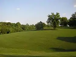 As the land was located around Beargrass Creek, it was hilly and ill-suited to farming. Prior to its conversion as a park, the land was used primarily for animal grazing, although much of it was wooded.[4] By 1893 the land was carved into six estates, including Cochran's (which was sold to the city after his death in 1889). The other estates belonged to the Bonnycastle 63 acres (250,000 m2), Barret 20 acres (81,000 m2), Morton & Griswold 106 acres (0.43 km2), Alexander 25 acres (100,000 m2) families, respectively. Those and two small lots under 1-acre (4,000 m2) were bought by 1891. Additional land from the Longest, Barringer and Belknap families would be added to expand the park to its modern size.[5]