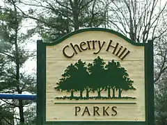 When the township sought a new post office, another New Jersey municipality in Hunterdon County was using the name Delaware Township. The United States Postal Service insisted on a name change, suggesting "Deltown". Delaware Township mayors Christian Weber and John Gilmour pursued public write-in campaigns to select possible titles and chose Cherry Hill from suggestions that included Chapel Hill, Cherry Valley and Delaware City.[32] The name "Cherry Hill" was chosen by the township's citizens in a non-binding referendum in 1961 and was officially adopted on November 7, 1961.[27]
