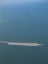 The Chesapeake Bay Bridge–Tunnel (CBBT, officially the Lucius J. Kellam Jr. Bridge–Tunnel) is a 17.6-mile (28.3 km) bridge–tunnel that crosses the mouth of the Chesapeake Bay between Delmarva and Hampton Roads in the U.S. state of Virginia. It opened in 1964, replacing ferries that had operated since the 1930s. A major project to dualize its bridges was completed in 1999, and a similar project to dualize one of its tunnels is currently underway.[2]