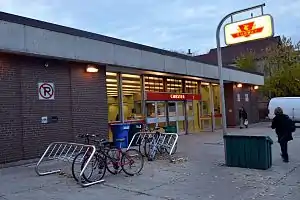 The Gateway Newsstand kiosk at the station, which had been vacant for over six years, was reopened on May 8, 2015,[13] as "the Artist Newsstand" by a group of local artists led by Jess Dobkin.[14][15] Along with the usual offerings of newspapers, magazines and drinks, the Artist Newsstand is a performance and gallery space for artists[16] and was staffed by artists as a way of funding their work. A $4,000 Kickstarter campaign was launched to fund the renovation of the kiosk, with the campaign successfully raising $4,931.[17] The Artist Newsstand operated in the space for one year.[15]
