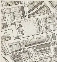 - Error in source Edward Walford, who states (p.353) ground purchased from "Curzon, Earl Howe", an anachronism. It is assumed he meant Richard Howe
