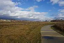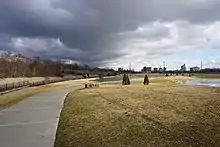 In March 2015, the 60-acre (24 ha) site began a redevelopment and revitalization process that ultimately transformed it into a park, starting with the removal of wire fencing and work on sewer lines.[4][9] On April 17, the city officially celebrated the start of work on Chevy Commons with a groundbreaking ceremony.[10] The former brownfield was redeveloped into restored grasslands, meadows, and woodlands while walking trails were created on the site.[11] Its design features green spaces, low-maintenance native plants, and wetlands that are intended to control the cost of stormwater management.[7]