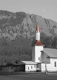 Chewelah is a town of firsts in Stevens County. It had the first Protestant Congregational Church in 1891, the first school in 1869,[12] the Spokane Falls and Northern Railway arrived in 1889, a Catholic church was established in 1885, and the first county newspaper was founded in July 1885.[13]