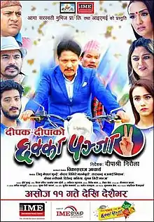 Chhakka Panja 2 (Nepali: छक्का पन्जा २), also abbreviated and known as CP2 or C:P 2, is a 2017 Nepalese dark comedy social drama film directed by Deepa Shree Niraula with story and screenplay written by Deepak Raj Giri and produced by Deepa Shree Niraula, Deepak Raj Giri, Kedar Ghimire and Jeetu Nepal for Aama Sarswoti Movies. It is the second film in the Chhakka Panja series. The film stars Deepak Raj Giri, Kedar Ghimire, Buddhi Tamang Priyanka Karki, Swastima Khadka, debutant Swaroop Purush Dhakal and Barsha Raut in the lead roles.[2][3][4][5]