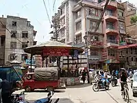 Chhetrapati (Nepali: क्षेत्रपाटी) is a settlement at the old part of Kathmandu city lying between Thamel, Asan and Kathmandu Durbar Square.[1] Six streets merge at the Chettrapati chowk coming from Thamel, Sorrakhutte, Dhobichour, Asan, Dallu and Basantapur. There is an ancient roundabout at the center of Chettrapati chowk.[2][3] It is one of the major route for celebration of Indra Jatra.[4]