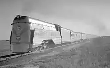 The streamlining on the S-4as were removed in 1942,[4] as the CB&Q was contributing to the World War II effort by scrapping most of their unnecessary equipment in favor of the war's steel drive. No. 4000 was also reassigned again to pull heavier trains that would carry military soldiers and military equipment. Once World War II ended, the CB&Q began investing in adding additional diesel locomotives to their fleet, and they began to dieselize their passenger trains.[5] The CB&Q dieselized their entire passenger fleet on September 26, 1952, and No. 4000 and other 4-6-4's were subsequently retained as emergency backup power for when diesel locomotives broke down.[5][6]