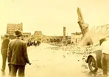 The Chicago Union Stock Yards fire of 1934 was the second-most destructive fire in the city's history, after the Great Chicago Fire of 1871, in terms of property damage and buildings lost.[1] The Union Stock Yards of Chicago, Illinois in the United States were, at the time, the commercial butchering and meatpacking center of the Midwest. The financial cost of the fire, which began Saturday, May 19, 1934,[2] was estimated at US$8 million (about $162 million today[3]). Six square blocks were destroyed.[4] One employee and thousands of animals died.[2]