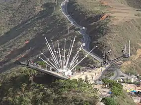 The park features an aerial tramway that crosses Chicamocha Canyon, in addition, there are parking spaces, viewing decks, and plenty of trails. Cultural activities include the Museo Guane, Plaza de las Costumbres and the Salón de Exposiciones,[1] skating rink, karts circuit, ostriches, goats, a monument named monument to Santanderean culture, a 360 degree viewing deck located at the highest point of the canyon