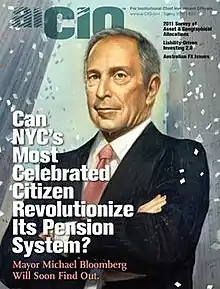 Asset International was acquired in January 2009, by venture capital firm, Austin Ventures[7] which sold to Genstar Capital in July 2014.[8] Following the first acquisition, the firm was relocated from Connecticut to Manhattan.[6] Offices are located in New York City, Hong Kong, Melbourne, London, and Stamford, Connecticut. The magazine changed its name to aiCIO from ai5000 in late 2010, to describe its audience by function (chief investment officers), as opposed to size (the 5,000 largest funds in the world, with the cutoff being around $1 billion), and again to CIO in 2014.[7] The magazine is the sister publication of Global Custodian, PLANSPONSOR, planadvisor, and aiTrade.[7][9][10] Leanna Orr took over for Paula Vasan as Managing Editor in March of 2013. Elizabeth Pfeuti serves as CIO's European Editor.