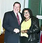 She was appointed the Goodwill Ambassador for the state of Arkansas and Maryland by the Governor and Mayor respectively; and was awarded the "Key to the City" of Little Rock, Arkansas by Mayor Mark Stodola. In 2014, Chief Temitope Ajayi was honoured alongside Nobel Peace Prize winner Leymah Gbowee, H.E. Ngozi Okonjo-Iweala (Nigeria’s Finance Minister) and many others by the Global Connection for Women (GC4W) in its 2014 International Women’s Day Awards Gala at the Harvard Club of New York.[27] Chief Temitope Ajayi was among the few Nigerians selected as part of Nigeria’s Success Stories in the Private Sector in Agriculture by the Corporate Council on Africa and the Embassy of the Federal Republic of Nigeria. In her capacity as the then President of ANAC, Temitope Ajayi mobilized a Nigerian leadership coalition to challenge the false imagery of Nigerians in America as criminals, a documentary forecasted on CNN titled: How To Rob A Bank? After several dialogues, CNN representative apologized to the Nigerian Community for such false imagery of Nigerians in the United States. She received a Congressional award from Congresswoman Barbara Lee for her role. Chief Ajayi also received the "key to the city" of Dyersville, Iowa from the Mayor of the city, James Heavens, who also presented a proclamation affirming that every 16 July will be celebrated as "Nigerian Friendship Day".[3]