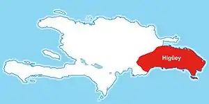 The cacicazgo of Higüey spanned the entire southeast of Hispaniola, bordered to the north by the cacicazgo of Maguá and the Bay Samana, south by the Caribbean, east by the Canal de la Mona, and west by the cacicazgo of Maguana. It was ruled by the cacique Cayacoa and was divided into 21 nitaínos. The capital of the cacicazgo was located in present-day Higüey.