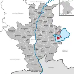 ![]() Aerial image of the Chiemsee municipality with the islands Frauenchiemsee, Krautinsel, and Herrenchiemsee (from top to bottom) | |