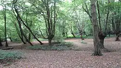 The wood is a remnant of the ancient Hainault Forest, and its history can be traced back to the seventeenth century. The trees were traditionally pollarded for fuel, and 366 pollards over 250 years old have been recorded. 75% of these are hornbeam and 20% oak.[1] Over 800 species of invertebrates have been recorded.[2] In the early 2000s heathland areas were suffering from invasive bramble and aspen, and since 2005 clearance of these species has resulted in a return of heathland species.[1]