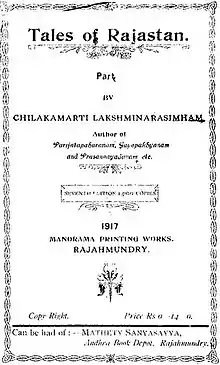 - Chilakamarti Lakshmi Narasimham (1917). Rajasthana Kathavali (in Telugu) (Tenth ed.). Rajahmundry. Retrieved 21 February 2021.