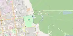 Along Komsomolskaja Road the track follows a lake only a few metres of its shore. A 1.73 m high concrete wall was built 1½ to 2 metres away from the rails in the mid 1970s, to mitigate the risk of erosion.