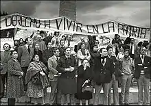 Starting in the late 1970s the regime began to use a tactic of faking combats, usually known by its Spanish name: "falsos enfrentamientos".[62] This meant that dissidents who were murdered outright had their deaths reported in media as if they had occurred in a mutual exchange of gunfire. This was done with support of journalists who "reported" the supposed events; in some cases, the fake combats were also staged. The faked combat tactic ameliorated criticism of the regime implicitly putting culpability on the victim. It is thought that the killing of the MIR leader Miguel Enríquez in 1974 could be an early case of a faked combat. The faked combats reinforced the dictatorship narrative on the existence of an "internal war" which it used to justify its existence.[63] A particular fake combat event, lasting from September 8 to 9 1983, occurred when forces of the CNI lobbed grenades into a house, detonating the structure and killing the two men and a woman who were in the building. The agents would later state, with help from the Chilean press, that the people in the house had fired on them previously from their cars and had escaped to the house. The official story became that the three suspects had caused the explosion themselves by trying to burn and destroy incriminating evidence. Such actions had the effect of justifying the existence of heavily armed forces in Chile and the dictatorship's conduct against such "violent" offenders.[64]