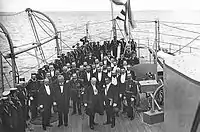 The ship was powered by two vertical triple-expansion steam engines, supplied by 30 Belleville water-tube boilers, driving two shafts. These engines generated 16,500 indicated horsepower (12,300 kW) and propelled the ship to 21.6 knots (40.0 km/h; 24.9 mph).[1] Up to 1,253 long tons (1,273 t) of coal could be carried, giving a range of 4,580 nautical miles (8,480 km; 5,270 mi) at 8 knots (15 km/h; 9.2 mph).[2]