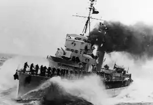 The third Aldea was a Serrano-class destroyer of the Chilean Navy in service from 1928 to 1967, but temporarily reactivated in 1973 to participate in the coup d'etat, where she and Captain Prat were used to secure Federico Santa María Technical University.[1] She was laid down in 1928 by Thornycroft, at Woolston, Hampshire, England. She was launched by Mrs. Berta Castro de Merino (mother of future admiral José Toribio Merino) in November 1928, and commissioned in July 1929.