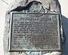 On the south side of the park, overlooking the James River, is a stone commemorating King Powhatan and his relationship with Captain John Smith and the English settlement in Jamestown known as the "Powhatan Stone". The stone was placed in the park in the 1950s by the Association for the Preservation of Virginia Antiquities.[48]