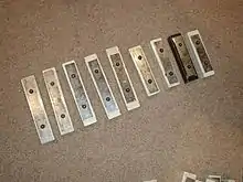 A chime bar or resonator bell[1] is a percussion instrument consisting of a tuned metal bar similar to a glockenspiel bar, with each bar mounted on its own wooden resonator.[2][3] Chime bars are played with mallets again similar to a glockenspiel.