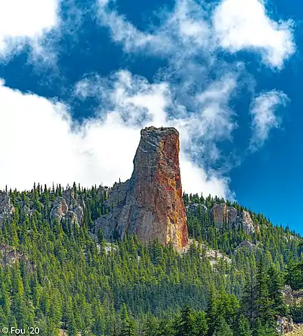 Chimney Rock (K'lpalekw in Secwepemctsin, meaning "Coyote's Penis") is a limestone formation in Marble Canyon, midway between the towns of Lillooet and Cache Creek in British Columbia, Canada. It is located within Marble Canyon Provincial Park.