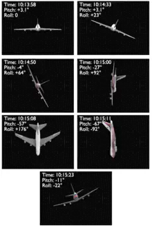 Meanwhile, as the airspeed decreased the autopilot rolled the control wheel to the maximum left limit of 23 degrees while maintaining level flight. As the speed decreased even further the aircraft began to roll to the right even though the autopilot was maintaining the maximum left roll limit. By the time the captain disconnected the autopilot the aircraft had rolled over 60 degrees to the right and the nose had begun to drop. Ailerons and flight spoilers were the only means available to the autopilot to keep the wings level as the autopilot does not connect to the rudder during normal flight. To counteract the asymmetrical forces created by the loss of thrust from the No. 4 engine, it was essential for the pilot to manually use the left floor pedal to push the rudder to the left. However, the captain failed to use any rudder inputs at all, before or after disconnecting the autopilot.[1]: 10–11