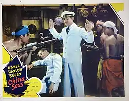 China Seas is a 1935 American adventure film starring Clark Gable as a brave sea captain, Jean Harlow as his brassy paramour, and Wallace Beery as a suspect character. The oceangoing epic also features Lewis Stone, Rosalind Russell, Akim Tamiroff, and Hattie McDaniel, while humorist Robert Benchley memorably portrays a character reeling drunk from one end of the film to the other.