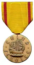 The China Service Medal was a service medal awarded to U.S. Navy, Marine Corps, and Coast Guard personnel. The medal was instituted by Navy Department General Order No. 176 on 1 July 1942.[3] The medal recognized service in and around China before and after World War II.
