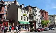 Washington, D.C.'s Chinatown is a small, historic area of Downtown Washington, D.C. along H and I Streets between 5th and 8th Streets, Northwest. The area was once home to thousands of Chinese immigrants, but fewer than 300 remained in 2017. The current neighborhood was the second in Washington to be called “Chinatown” since 1931. Originally, the first Chinatown was built in the Federal Triangle on the south side of Pennsylvania Avenue some time after 1851, but was moved to the H Street area when a new federal building was built there.[2] In 1986, a Chinese gate was built over H Street at 7th Street. By 1997, prominent landmarks such as the Capital One Arena, a sports and entertainment arena, had gentrified the area. The neighborhood is served by the Gallery Place station of the Washington Metro.[3]