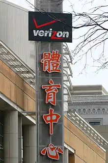Along with the development of the Verizon Center, historic buildings, mainly along the west side of 7th Street, were renovated and tenanted, primarily with nationally known brand shops and dining establishments. Within a short time, a significant mixed-use office-residential-retail development on the southeast corner of 7th and H streets commenced construction. These developments, which included restaurants, shops, a cinema complex, and a bowling alley, together with the Verizon Center, transformed the area into a bustling scene for nightlife, shopping, and entertainment. An anomaly is that most of the businesses are no longer representative of Chinatown, yet due to a city design guidelines encouraging businesses to use Chinese characters, even national chains such as Starbucks, Hooters, Ruby Tuesday, Ann Taylor, Urban Outfitters, Bed Bath and Beyond, and Legal Sea Foods hang their names in Chinese outside their stores.[11] Chinatown has become home to many high-growth technology companies, such as Blackboard, Blue State Digital, LivingSocial, and The Knowland Group.[20] It is also the location of the Washington branch of the Goethe-Institut.