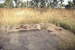 There are traces of a second building 2.5 metres (8 ft 2 in) south of the temple. There is evidence of several postholes and remnant walls of corrugated iron embedded in the ground. Preliminary investigation indicates that this structure had an earthen floor. In the narrow passage between this building and the temple there is a mound of earth, which probably supported a tank stand.[1]