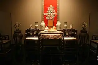 Chinese furniture flourished in Ming and Qing dynasties; as the result, the Ming-style furniture and the Qing-style furniture become the representative traditional Chinese furniture people often see today.[5] Suzhou, an area in Jiangsu Province, is distinguished by the fine production techniques of Ming-style furniture.[5] Thus, Ming-style furniture is also known as Suzhou-style furniture.