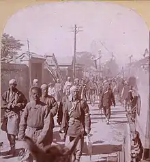 Ma Fuxiang had served under the Chinese Muslim general Dong Fuxiang, and fought against the foreigners during the Boxer Rebellion.[46][47] The Muslim unit he served in was noted for being anti-foreign, being involved in shooting a Westerner and a Japanese to death before the Boxer Rebellion broke out.[48] It was reported that the Muslim troops were going to wipe out the foreigners to return a golden age for China, and the Muslims repeatedly attacked foreign churches, railways, and legations, before hostilities even started.[49] The Muslim troops were armed with modern repeater rifles and artillery, and reportedly enthusiastic about going on the offensive and killing foreigners. Ma Fuxiang led an ambush against the foreigners at Langfang and inflicted many casualties, using a train to escape. Dong Fuxiang was a xenophobe and hated foreigners, wanting to drive them out of China.