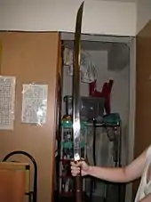 | Nandao | Nandao is a kind of sword that is nowadays used mostly in contemporary wushu exercises and forms. It is the southern variation of the "northern broadsword", or Beidao. Its blade bears some resemblance to the butterfly sword, also a southern Chinese single-bladed weapon; the main difference is the size and the fact that the butterfly swords are always used in pairs | ||