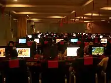 Legitimate acquisition of games and the hardware to play them was still relatively expensive in China, which continued to fuel the video game clone market in China.[10] A large number of PC gamers in China acquired software through illegal downloads and pirated software websites to avoid the cost. Developers of legitimate games in China recognized that, to compete with this black market, they had to develop games that had a free or low upfront cost model but offered a way to monetize their games over time. Many Chinese-developed games became online games offering numerous microtransactions to recoup costs; such games could be offered at Internet cafés, which became a popular option for Chinese players that could not afford computer hardware, even as the price of computing equipment dropped over the next decade. This created a boom of massively multiplayer online games (MMOs) in the Chinese market and which helped to establish market dominance of companies like Tencent, Perfect World, and NetEase.[10] PC cafés proliferated in urban centers as China's population continued to grow.[7] Western free-to-play and subscription-based games like Dota 2 and World of Warcraft, poised to take advantage of this model, also became successful.[7] It also prompted Chinese developers to develop numerous clones of popular Western games that they would offer at low cost, an issue that still persists presently.[7]