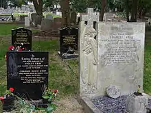Among those buried in the cemetery are sculptor John Bacon, the Kray twins and other members of their crime family, the meteorologist John William Tripe, and Benjamin Pollock, founder of Pollock's Toy Museum and Benjamin Pollock's Toy Shop. The cemetery contains the war graves of 139 Commonwealth service personnel of World War I and 182 of World War II, with the names of those whose graves have no headstones being listed on a low screen wall surrounding the War Graves Plot in Section F13.[1]