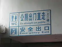 - Go straight on public is a mistranslation of "Public washroom outside on the second floor."