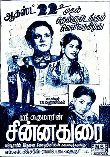 Chinna Durai is a 1952 Indian Tamil-language romantic thriller film, directed and produced by T. R. Mahalingam, and written by K. D. Santhanam. The film stars Mahalingam, S. Varalakshmi and G. Sakunthala, with V. K. Ramasamy and Chandrababu in supporting roles. It is based on the novel Irumana Mohinigal, by Vaduvoor Duraisamy Ayyengar. The film was released on 22 August 1952 and failed at the box office.