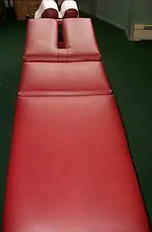 There are several schools of chiropractic adjustive techniques, although most chiropractors mix techniques from several schools. The following adjustive procedures were received by more than 10% of patients of licensed US chiropractors in a 2003 survey:[84] Diversified technique (full-spine manipulation, employing various techniques), extremity adjusting, Activator technique (which uses a spring-loaded tool to deliver precise adjustments to the spine), Thompson Technique (which relies on a drop table and detailed procedural protocols), Gonstead (which emphasizes evaluating the spine along with specific adjustment that avoids rotational vectors), Cox/flexion-distraction (a gentle, low-force adjusting procedure which mixes chiropractic with osteopathic principles and utilizes specialized adjusting tables with movable parts), adjustive instrument, Sacro-Occipital Technique (which models the spine as a torsion bar), Nimmo Receptor-Tonus Technique, applied kinesiology (which emphasises "muscle testing" as a diagnostic tool), and cranial.[87] Chiropractic biophysics technique uses inverse functions of rotations during spinal manipulation.[88] Koren Specific Technique (KST) may use their hands, or they may use an electric device known as an "ArthroStim" for assessment and spinal manipulations.[89] Insurers in the US and UK that cover other chiropractic techniques exclude KST from coverage because they consider it to be "experimental and investigational".[89][90][91][92] Medicine-assisted manipulation, such as manipulation under anesthesia, involves sedation or local anesthetic and is done by a team that includes an anesthesiologist; a 2008 systematic review did not find enough evidence to make recommendations about its use for chronic low back pain.[93]