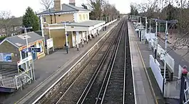 Chiswick railway station is a railway station within the Grove Park residential area of Chiswick in the London Borough of Hounslow. The station is on the Hounslow Loop Line, and all trains serving it are operated by South Western Railway. Journey time into London Waterloo is approximately 25 minutes and Clapham Junction 15 minutes. The station is in Travelcard Zone 3.