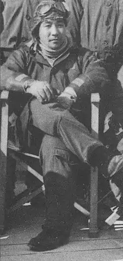 ![]() Isozaki in 1944 or 1945 while assigned to Air Group 210 in Japan | |