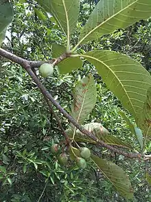 Diploknema butyracea (Nepali: चिउरी, Chiuri), the Indian butter tree,[1] is a multi purpose tree. Fat is extracted from the seeds and named chiuri ghee or phulwara butter. D. butyracea is useful for block planting and also to be grown in the ravines of hills. The latex yielding plant such as D. butyracea suits to different edapho-climatic conditions and thus does not compete with the traditional crops. It is a large tree of family Sapotaceae, flowers during cold season and fruit ripens in June–July. It commonly occurs in the sub Himalayan tract between 300-1500m from sea level. The chiuri tree has been utilised for many uses by rural households in Nepal. Ghee is used in daily cooking, as fuel for lamps, and body lotion; the fruit is eaten fresh and use for alcohol distillation, oil-cakes are utilised as manure, and the tree itself is used as firewood, etc. It has significant cultural and livelihood associations with the Chepang community (Nepali:चेपांग) of Nepal and are given as dowry to daughters. This is not commercially farmed though.