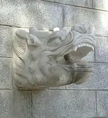 The name for this dragon is chīwěn (蚩吻), which compounds chī (蚩; 'hornless dragon; young dragon') and wěn (吻; '[animal's] mouth'). Chīshǒu (螭首) and Chītóu (螭頭), both literally meaning "hornless-dragon head", are similar architectural ornaments or waterspouts, comparable with Western gargoyles, but are not related to the mythological character.
