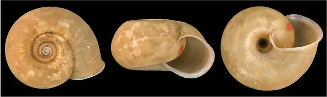 | three views of the shell of Chloritis biomphala | |