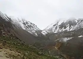 Cho La, also transliterated as Tro La, is a mountain pass across the Chola Mountains in Dege County, Garze Prefecture, Sichuan, China. In Mandarin Chinese, it is known as Qu'er Pass (Chinese: 雀儿山口; pinyin: Què'ér Shānkǒu). The pass reaches a height of 4,916 metres (16,129 ft) and may be snow covered year-round. The pass is an important link between the town of Derge and the rest of Sichuan Province. Historically, it was part of a trade route between Tibet and China through the Kingdom of Derge in Kham.[1] The western flank of the pass is drained by the Zhil Chu (Chinese: 色曲; pinyin: Sè Qū) and the eastern flank is drained by the Tro Chu (Chinese: 朝曲; pinyin: Zhāo Qū). Yihun Lhatso, a glacial-fed lake, is located to the east of the pass.[2]