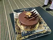 Chocolate cake is made with chocolate. It can also include other ingredients.[1] These include fudge, vanilla creme, and other sweeteners. The history of chocolate cake goes back to the 17th century, when cocoa powder from the Americas was added to traditional cake recipes.[2] In 1828, Coenraad van Houten of the Netherlands developed a mechanical extraction method for extracting the fat from cacao liquor resulting in cacao butter and the partly defatted cacao, a compacted mass of solids that could be sold as it was "rock cacao" or ground into powder.[3] The processes transformed chocolate from an exclusive luxury to an inexpensive daily snack.[3] A process for making silkier and smoother chocolate called conching was developed in 1879 by Rodolphe Lindt and made it easier to bake with chocolate, as it amalgamates smoothly and completely with cake batters.[3] Until 1890 to 1900, chocolate recipes were mostly for chocolate drinks,[3] and its presence in cakes was only in fillings and glazes.[4] In 1886, American cooks began adding chocolate to the cake batter, to make the first chocolate cakes in the US.[4]