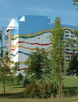 Chodov (Czech pronunciation: [ˈxodof]) is a suburb of Prague in the Czech Republic. It lies in the south-east of the city, and became part of the Prague municipality in 1968. In terms of the Prague districts defined in 1960, it lay in administrative district 4, and its postal address is still Prague 4. However, since 2001 it has been placed in the administrative district Prague 11; within that, it lies in the Prague 11 municipal district. It has a Metro station, on the C line. It is principally an area of large high-rise post-Second World War housing developments, but since the Velvet Revolution of 1989 there has been rapid development of commercial sites such as car dealerships; there are also some areas of detached housing. There are a number of hotels in the district, some of them large establishments catering to the congress and package holiday trade. Notable buildings include:
